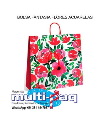 BOLSA FANTASIA FLORES ACUARELAS 32X10X30